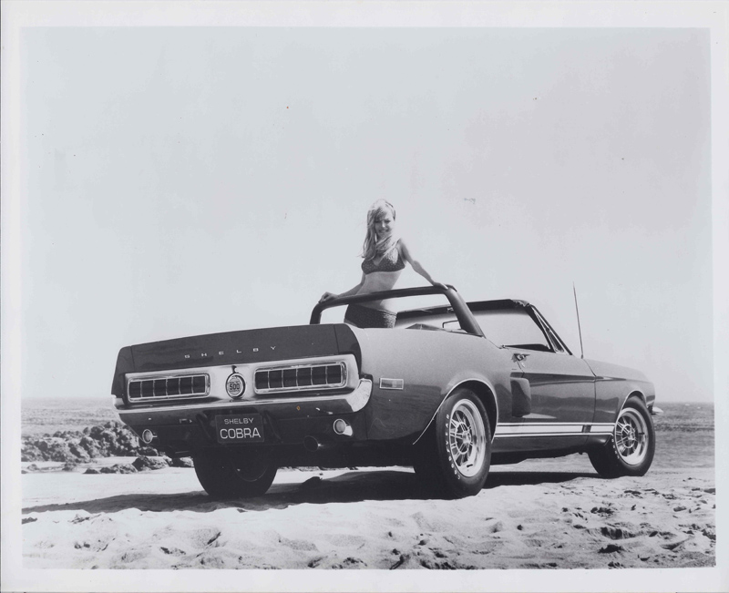 After four months of being thoroughly enjoyed by Carroll and friends, the ’67 convertible was transformed into a ’68 styling prototype in April 1967. A hand-built fiberglass hood, front-end, tail light panel, and custom emblems were fabricated so that the convertible could be photographed to promote the upcoming 1968 model year Shelby cars.