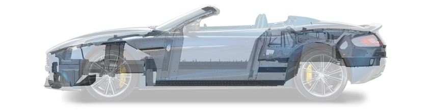 As well as being light, strong and flexible in its application, the gen4 VH architecture is also extremely rigid. The new Vanquish Volante is, in fact, 14% torsionally stiffer than the DBS Volante which preceded it, making it highly resistant to flex and allowing for responsive and predictable handling.